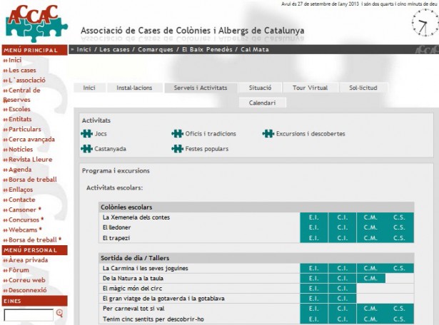 A més, a la fitxa de les instal·lacions s'afegiran els programes de les colònies i sortides dins la pestanya 'Serveis i activitats'. Les cases que desitgin publicar la informació per a escoles, només han de