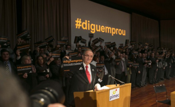 El president de Pimec, Josep González, va recordar les dues anteriors ocasions en què aquests empresaris van fer actes reivindicatius multitudinaris (el 1992 i el 2009) i va clamar: "Com aleshores, ara ha arribat el moment d'alçar la nostra veu per fer-nos valer davant els poders públics, els poders fàctics i la societat en general". S'ha trencat, va dir, "el contracte social entre els petits empresaris, que són la majoria del teixit productiu, i els governants, que s'han mostrat més sensibles als grans lobbies i les elits que als interessos d'aquesta majoria silenciosa".
