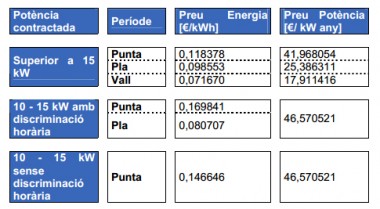 - Els preus indicats no inclouen l’impost elèctric (IEE) ni l’IVA