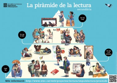 Tots els centres educatius de Catalunya rebran, a partir d’aquesta setmana, un conjunt de cartells i propostes didàctiques per tal d’afavorir el desenvolupament de l’hàbit lector entre l’alumnat, tant a l’educació primària com a l’educació secundària. Es tracta de la Piràmide de la lectura, un recurs inclòs dins el pla Impuls de la Lectura que pretén desenvolupar i refermar aquest hàbit, no només a l’aula sinó també fora d’ella, per millorar l’èxit escolar.