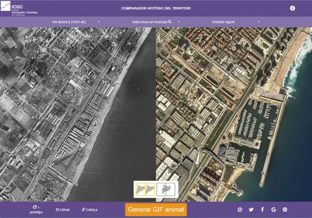 El Comparador històric del territori, creat per l’Institut Cartogràfic i Geològic de Catalunya, permet contrastar mapes o fotografies aèries i crear un gif animat de l’àrea triada
